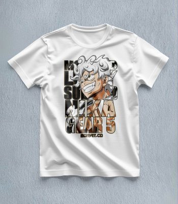 تيشيرت أنمي بتصميم Gear 5 الجريء، يجسّد روح القوة والحرية بأسلوب فني لافت للنظر.
